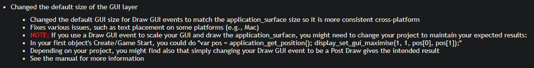The first was that it actually completely broke in Game Maker Studio 1.4.9999. For reference, we use 1.4.1804, the release just before 1.4.9999, as our release candidate, due to a few quirks such as sound issues, but some devteam develop on 1.4.9999 due to it being all that’s available to them. Between the two versions though, the base GUI code was changed to be more consistent cross-platform.